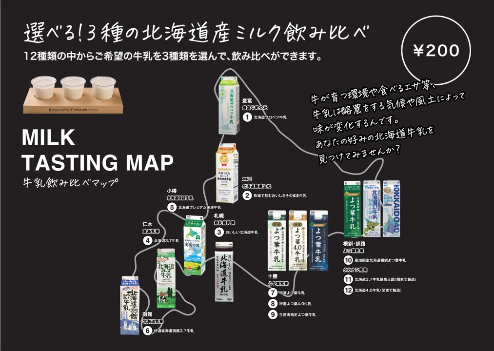 ・選べる!3種の北海道産ミルク飲み比べ:200円(税込)