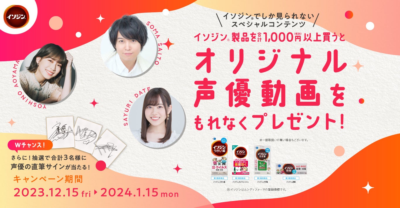【日本初】うがいタイム専用動画 あの人気声優があなたのうがいを応援します。イソジン®製品を合計1,000円以上ご購入でプレゼント!12月15日(金)スタート!