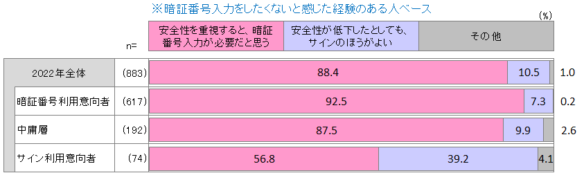 ただし、サイン利用意向者の56.8%が、暗証番号の必要性を感じており、安全性が高いことは認識されていいます。(図表9)