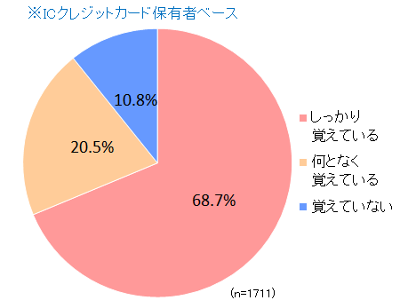 ICクレジットカード保有者の暗証番号の認知率は89.2%(前回調査2019年度比:+2.9%)であることがわかりました。