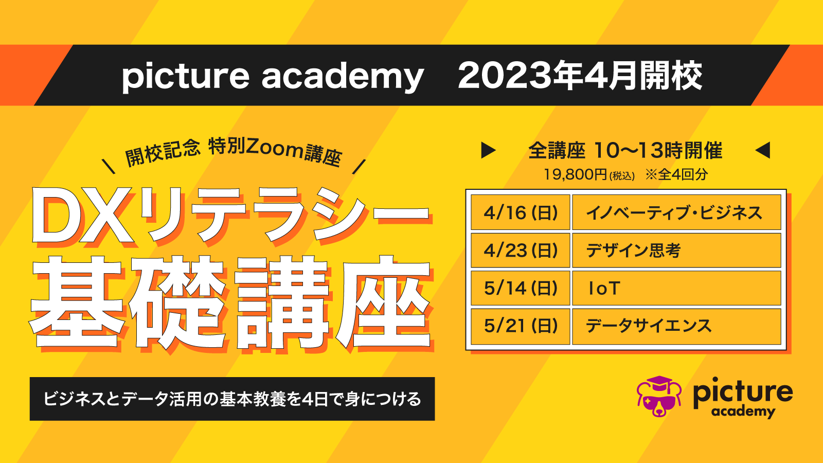 そんな想いと共に、2023年4月、イノベーティブな人材を育成するスクール「picture academy(ピクアカ)」を開校します