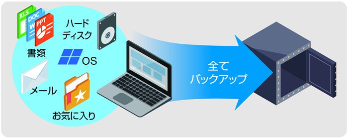 Windows、データ(写真やオフィスファイル)、アプリケーション、設定を含め、丸ごとバックアップすることができます。OSが起動できない場合には、全体を復元することができる他、特定のファイル/フォルダ単位で復元することも可能です。