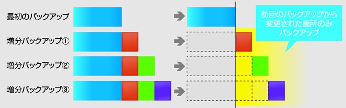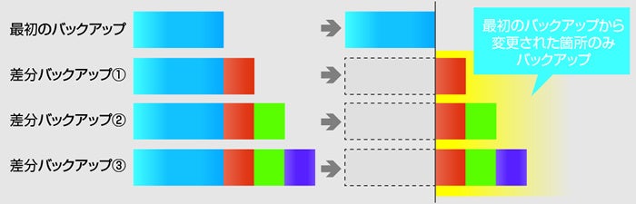 一旦バックアップを取った後は、変更された部分(セクタ)のみバックアップすることで、バックアップを最新の状態に保つことができます。
