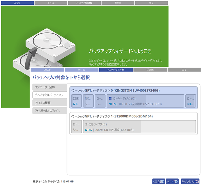 ■ディスク全体やパーティション単位で丸ごとバックアップ