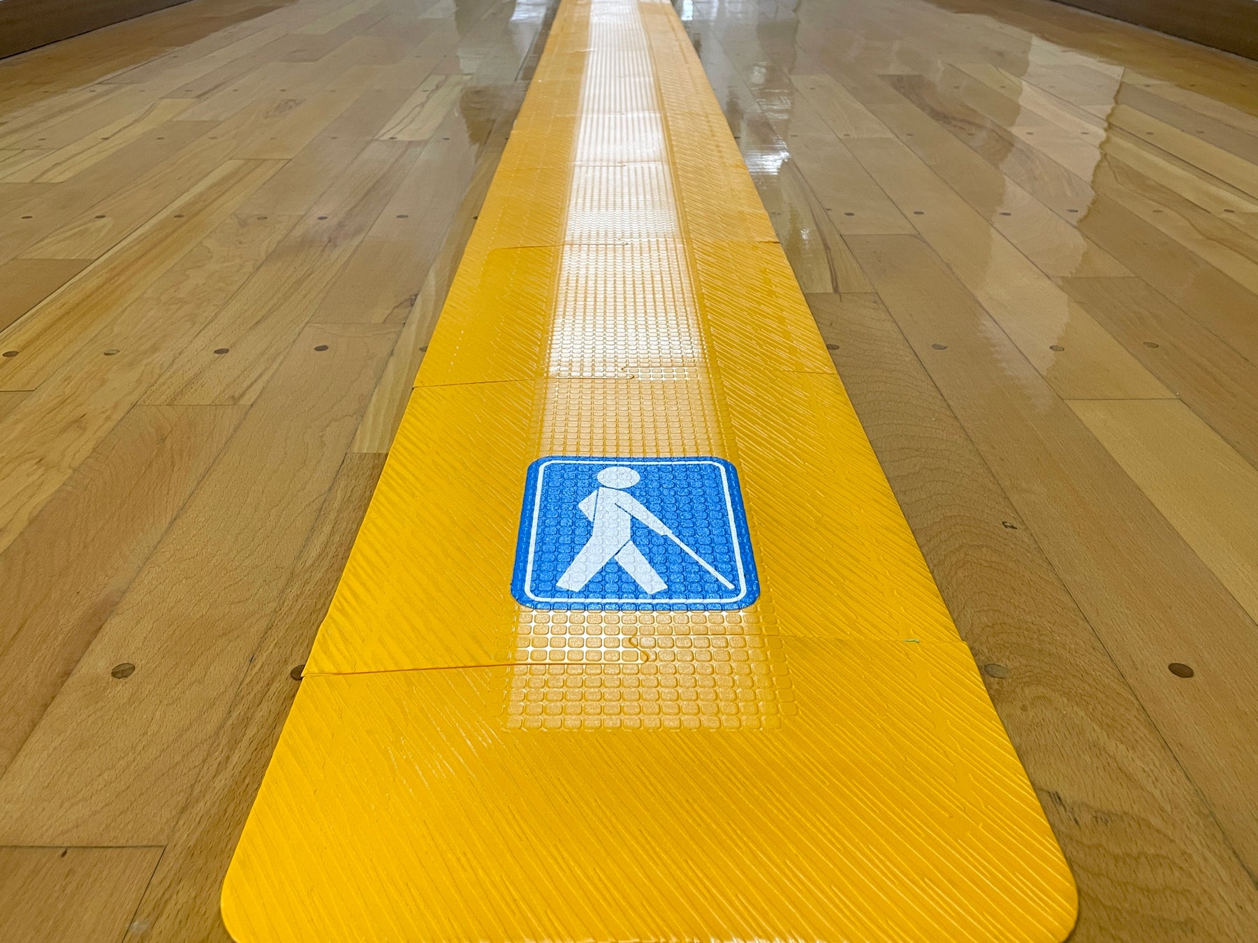 既存の建物に柔軟に対応可能、すべての人が自由に移動できるユニバーサルデザインの誘導路