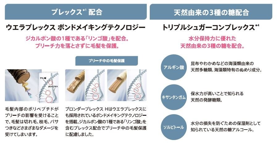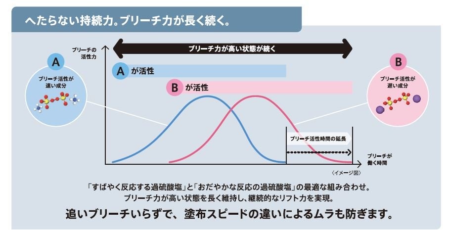 「明るさ」も。「ダメージへの配慮」も。「操作性」も。欲しいが叶うネクストブリーチ。へたらない持続力。プレックス*1 配合のハイリフトブリーチ「ブロンダープレックス H」が新登場!