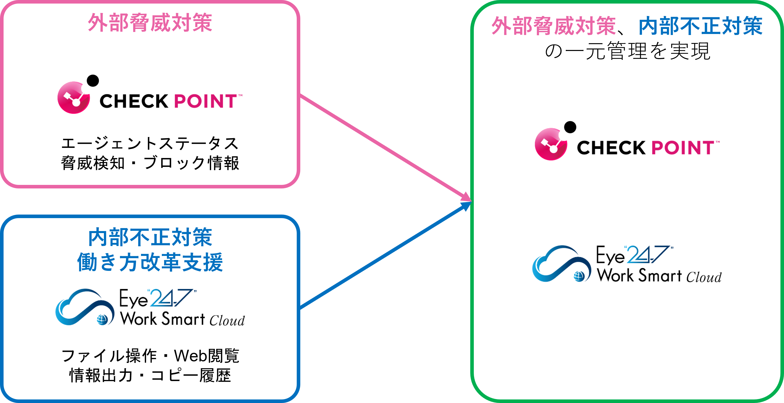 フーバーブレインとチェック・ポイントは、場所・時間を問わず安心安全に働ける環境を実現できるソリューションを提供するため、協同開発を開始します。フーバーブレインの働き方改革支援製品「Eye“247” Work Smart Cloud(以下、ワークスマートクラウド)」と、チェック・ポイントのセキュリティ製品「Harmony Endpoint(以下、ハーモニーエンドポイント)」を連携します。