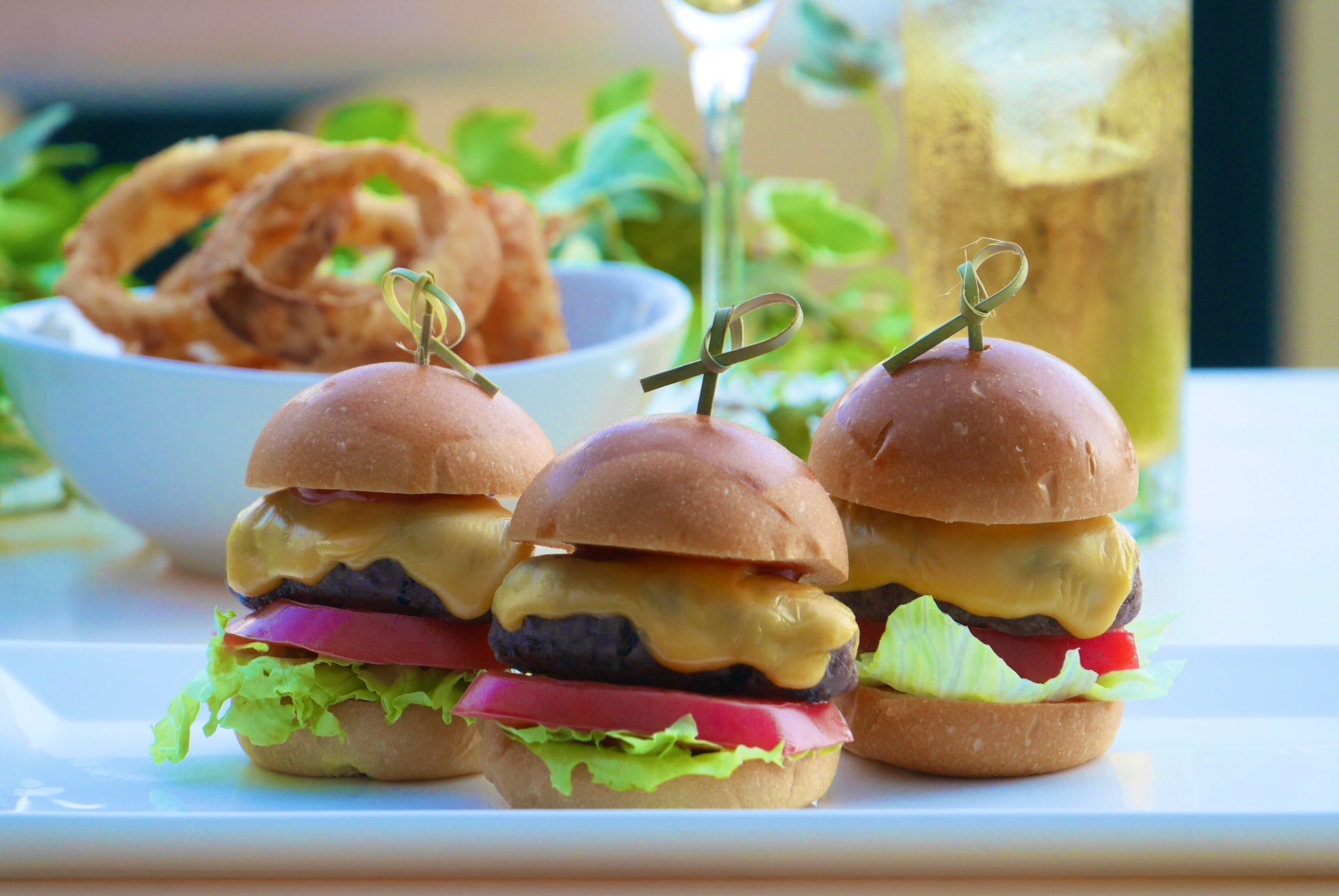 おすすめフードメニュー。「スライダー」の名前の由来は「喉を滑り落ちていく(スライドする)ほど小さい」ことから来ていると言われています。