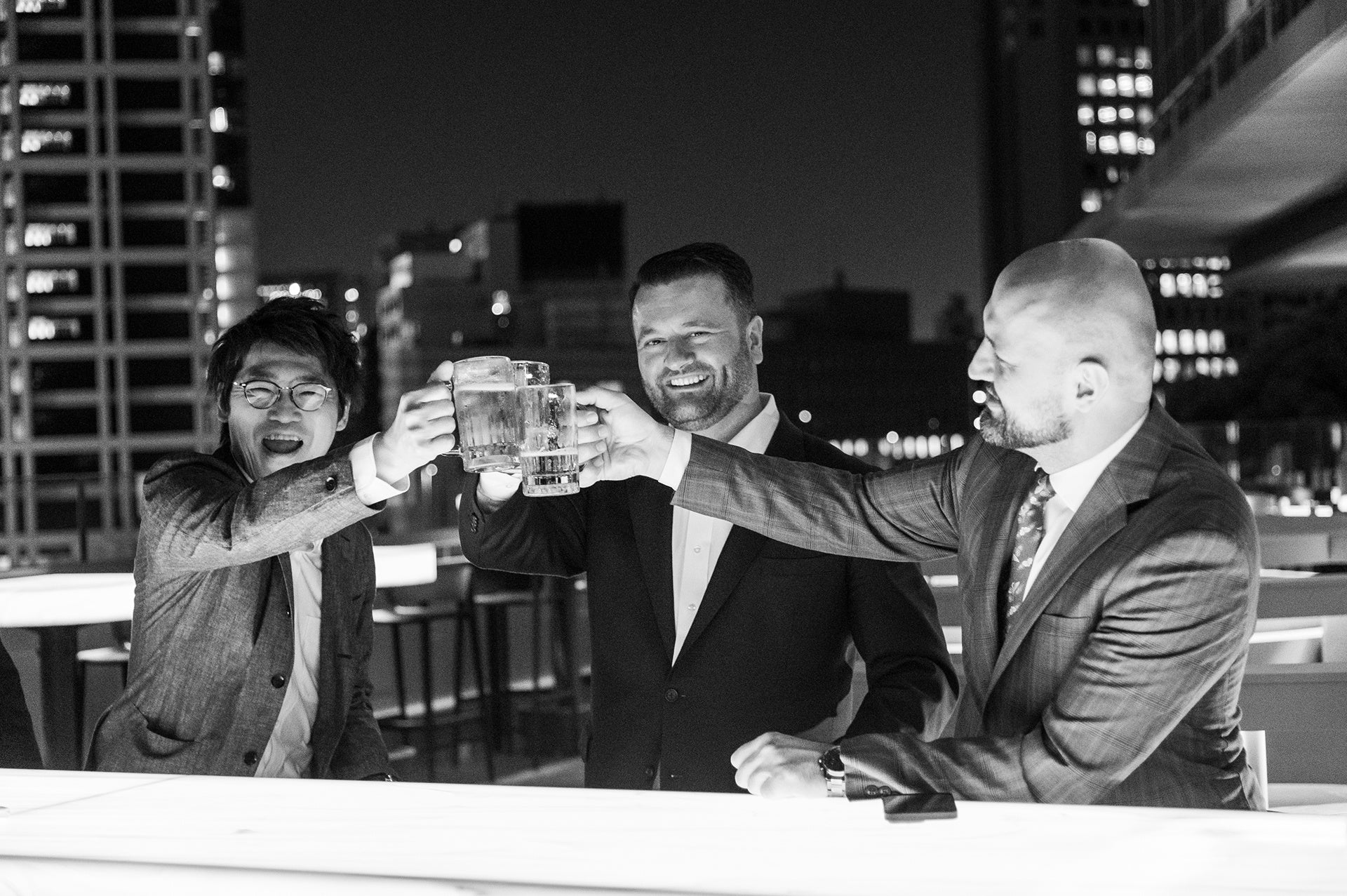 NYオーナー陣と弊社代表がスタンディングバーにて