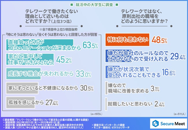 就活中の大学生が、必ずしも原則出社の職場を敬遠しているわけではないといえるでしょう。
