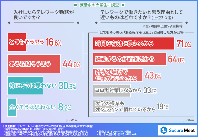 学生の希望と企業のニーズが一致することで、テレワークへの期待値も高まるのではないでしょうか。