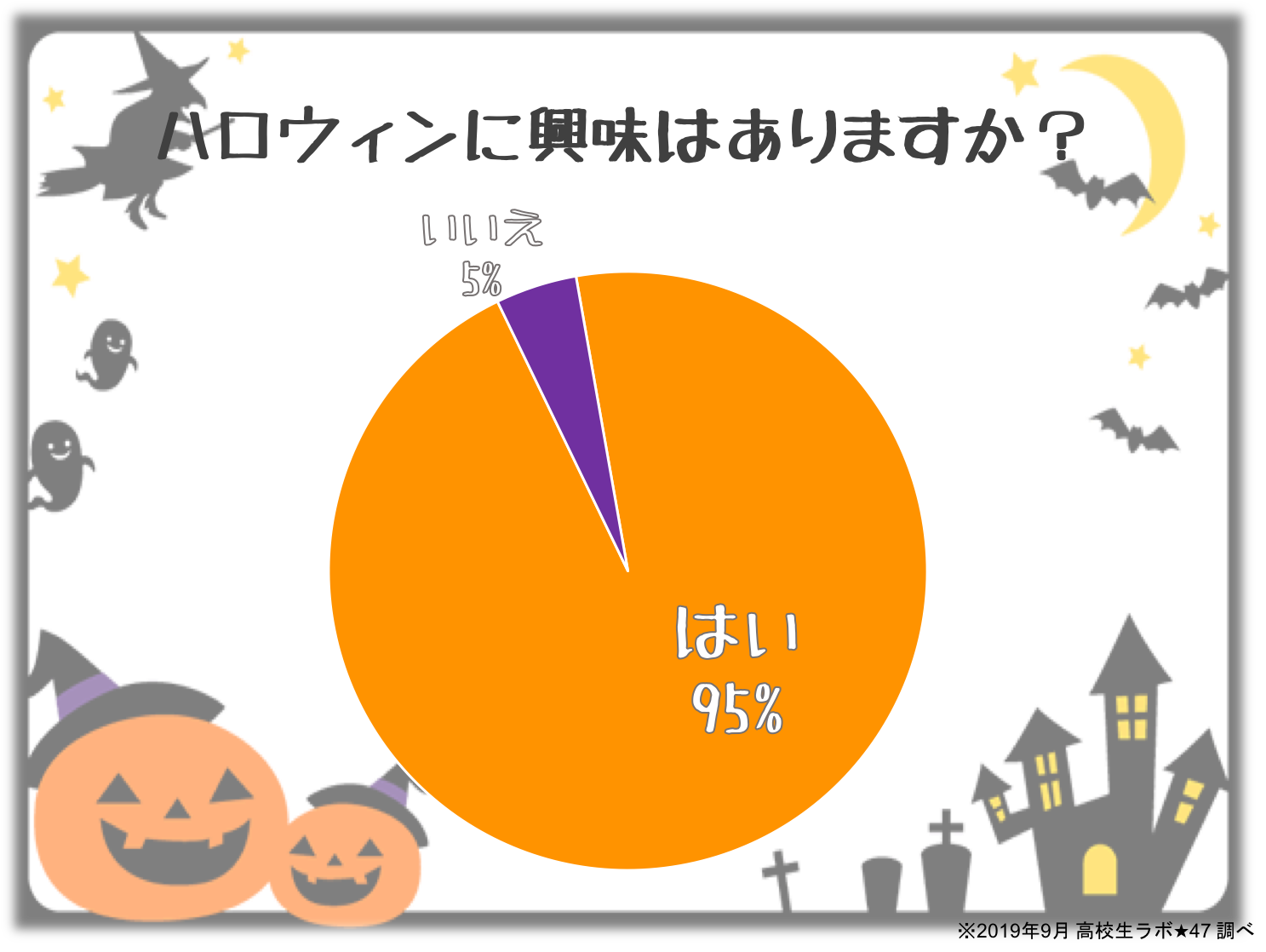 「ハロウィンに興味がありますか?」という質問には、なんと95%の高校生が”はい”と回答しました。