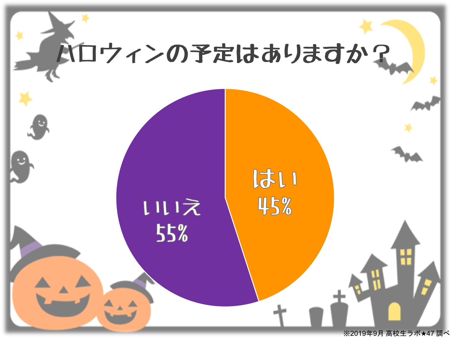 興味はあるものの、まだ1ヶ月近く先ということで実際にハロウィンの予定があるという子は半数以下となりました。