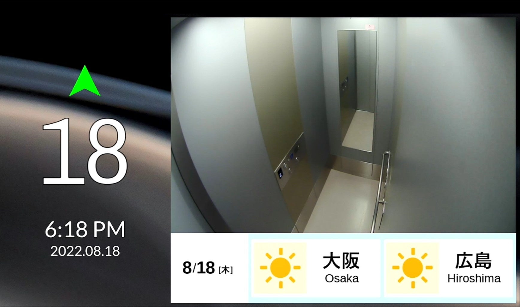 かごの位置や移動方向、日付や時刻を表示します。