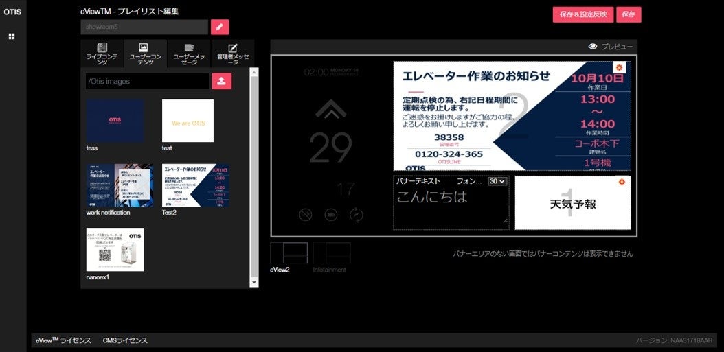 •お客様は、オーチスのウェブポータル(eView®コンテンツ表示設定システム)を介し、リアルタイムにコンテンツをカスタマイズ、及び管理することが可能。