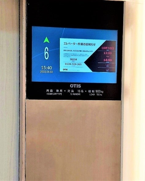 なお、新設のエレベーターや改修したエレベーターにはディスプレイをかご内操作盤に埋め込み、既設のエレベーターには後付けディスプレイを取り付ける形で設置が可能です。