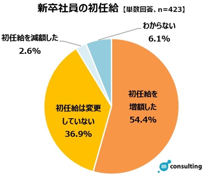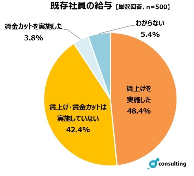 ~新卒の初任給増額した企業54.4%、既存社員の賃上げを実施した企業は48.4%。人材に関するコストカットを実施した企業は15.2%。~