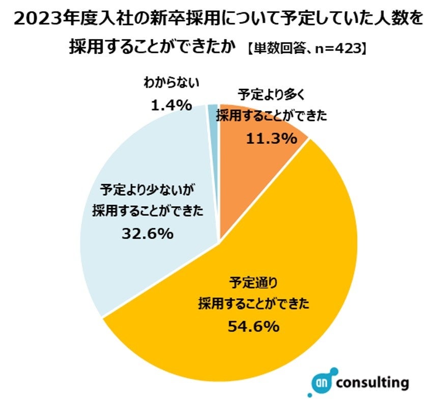 ■2023年度の新卒採用状況、予定通りの採用は54.6%と約半数