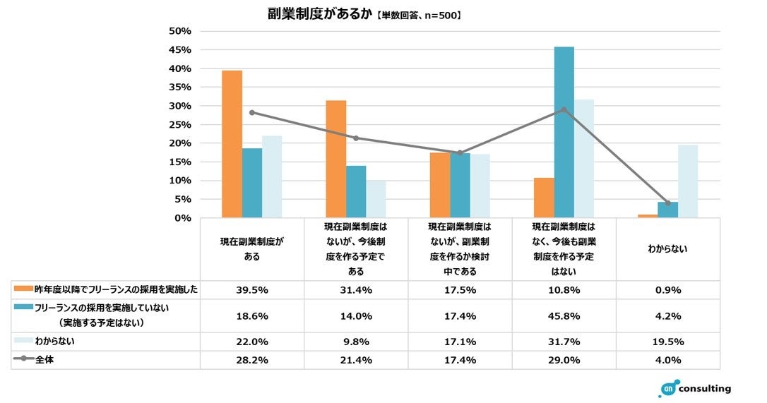 ~副業制度がある企業は28.2%。フリーランス採用に積極的な企業は副業制度導入にも積極的な傾向が高いことが明らかに。~