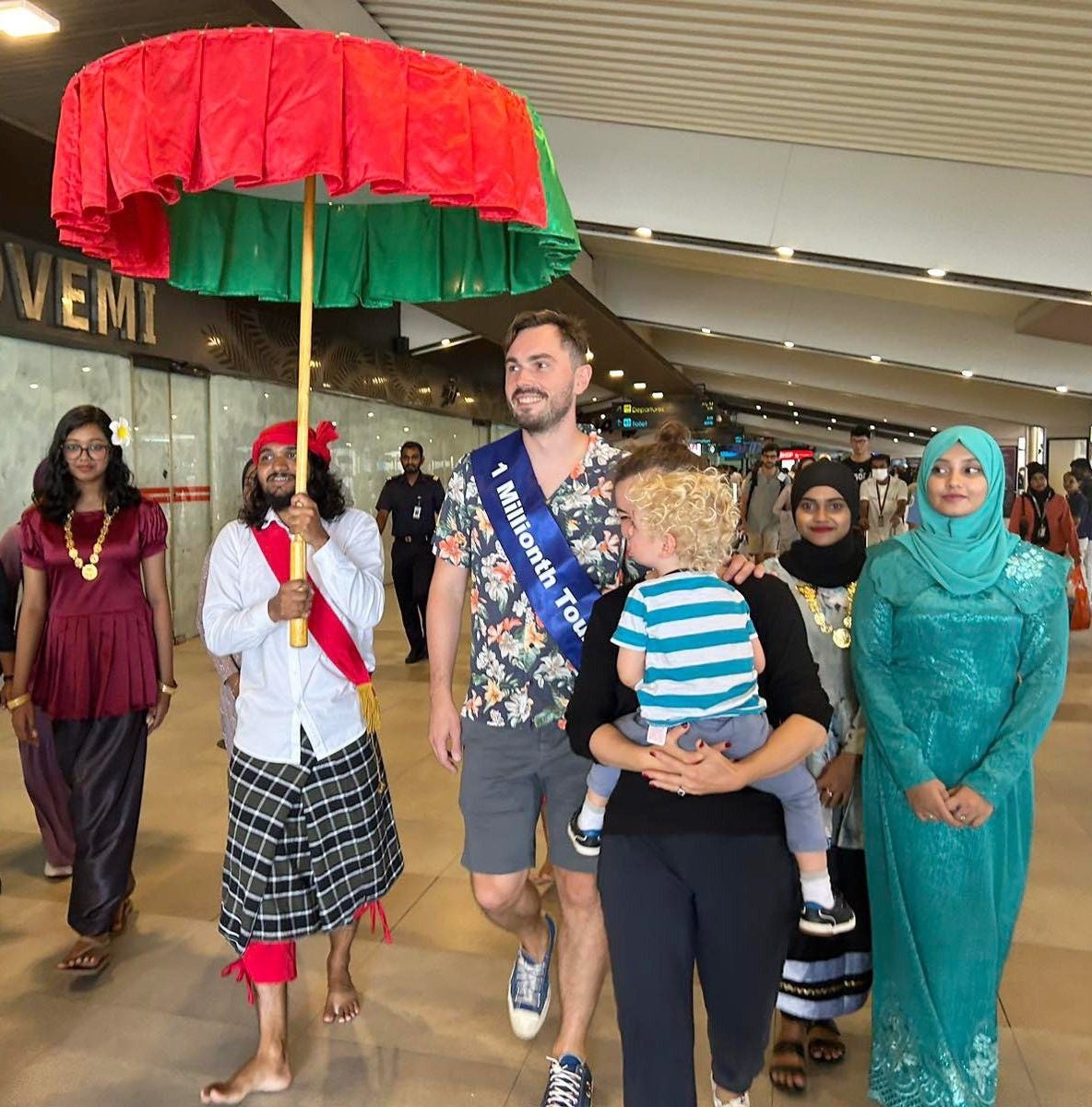 2023年の100万人目の観光客は、ブリティッシュ・エアウェイズのBA061便で家族と一緒に到着したイギリス人のアントン・パブロフ氏でした。一家は文化的なパフォーマンスとともにイベント会場に案内され、モルディブ観光省(MOT)、モルディブ・マーケティング&PR・コーポレーション(MMPRC)の高官による歓迎を受けました。今年の100万人目の旅行者であるアントン氏は、モルディブ政府観光省、MMPRC、MACL、モルディブ入国管理局、観光業界から、モルディブでの休暇に欠かせない地元産の製品を集めた、記念の特別ギフトパックを受け取りました。