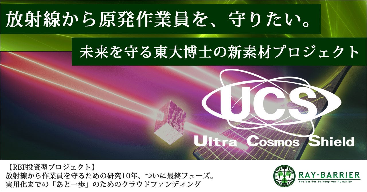 この度、株式会社レイバリア(代表取締役:江本真聰)が開発した第三の放射線遮蔽(しゃへい)材「UCS(Ultra Cosmos Shield)」の実用化を支援する投資型クラウドファンディングプロジェクトとして、UCS実用化支援ファンドを組成。宙とぶペンギン( https://flying-penguin.jp )内にて募集受付を開始したことをお知らせします。