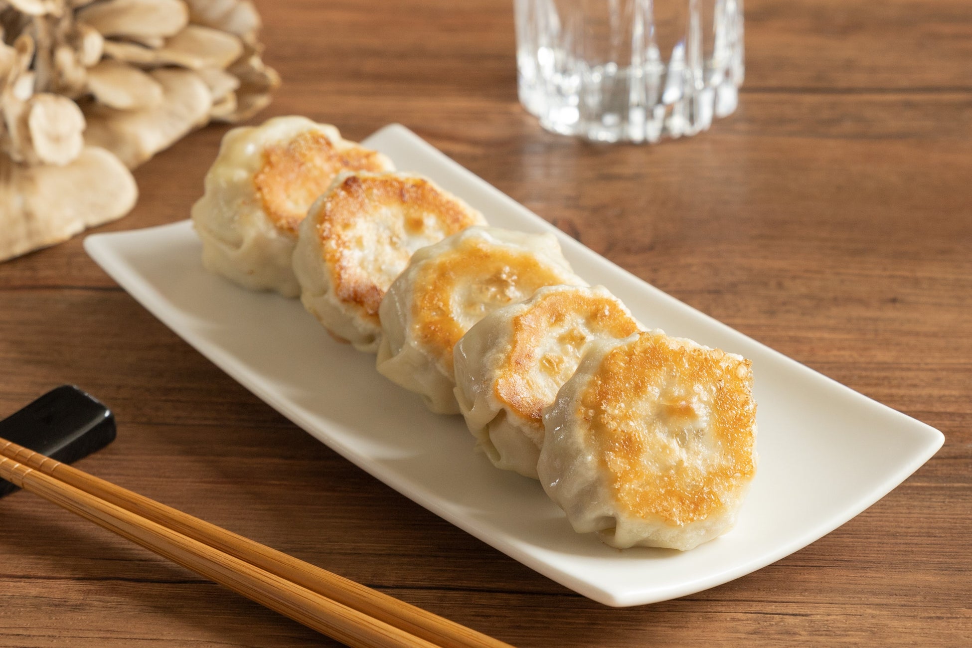 新潟県産の「雪国まいたけ」を刻んでふんだんに使用しました。舞茸の歯ごたえとたっぷり溢れる旨みが引き立つ秋の味覚の餃子です。