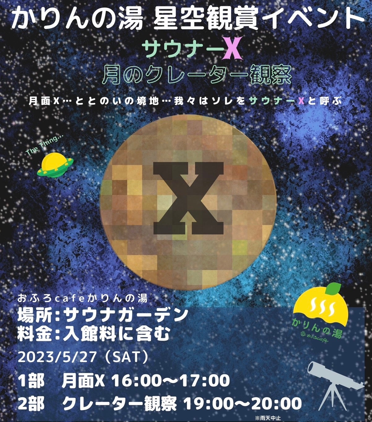 【おふろcaféかりんの湯 星空観賞イベント5月「サウナーX / 月のクレーター観察」】