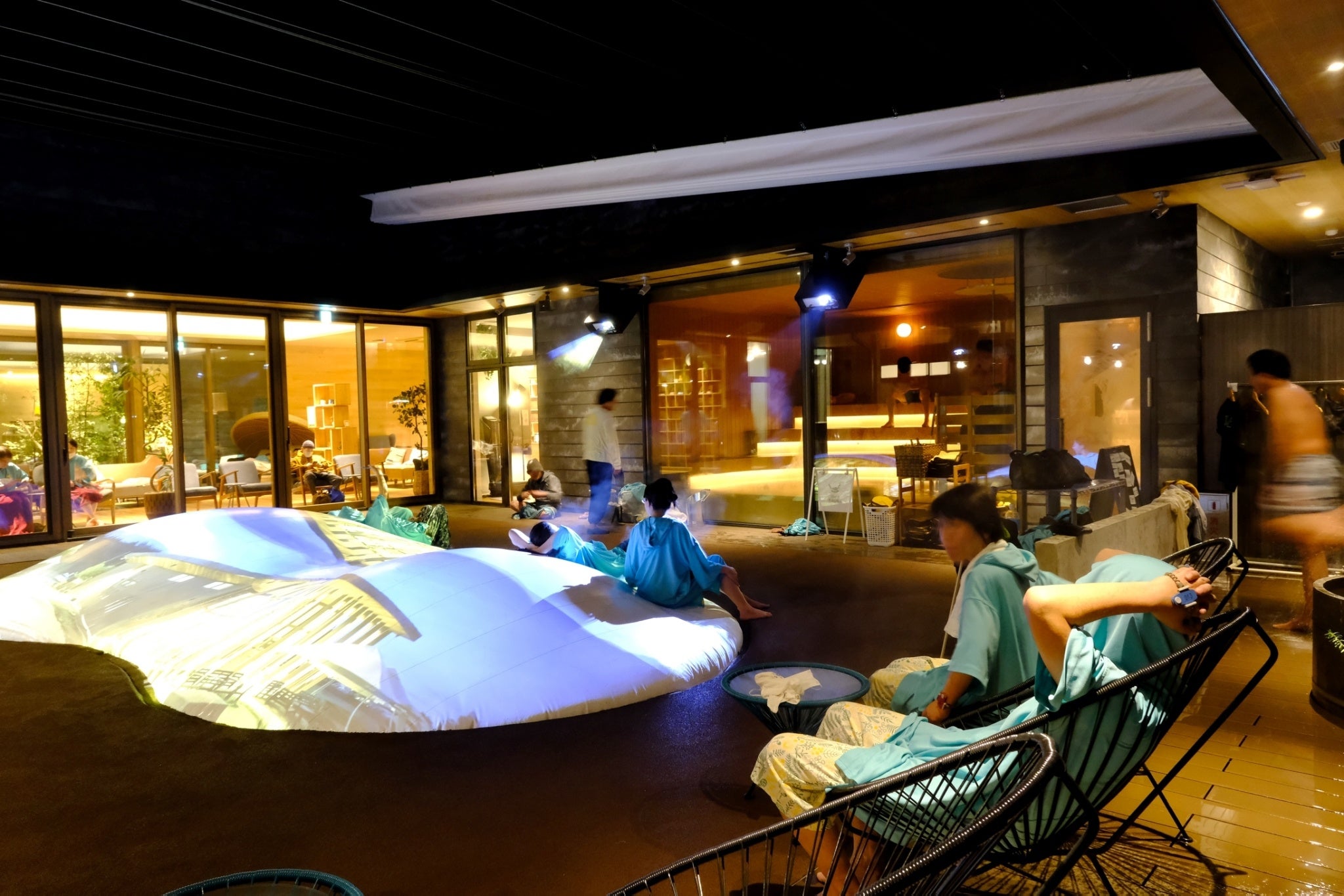 2023年からはサウナガーデンに設置された「ふわふわドーム」にザファーム・香取市の星空をプロジェクションマッピングで投影する日本初の試みをスタートさせたことでも話題となりました。ザファームではおふろcaféかりんの湯のみならず、日々の天体観測イベントをグランピングエリアで提供しており、今後も「農園リゾート×星空」を用いた新しいサービスを拡充してまいります。