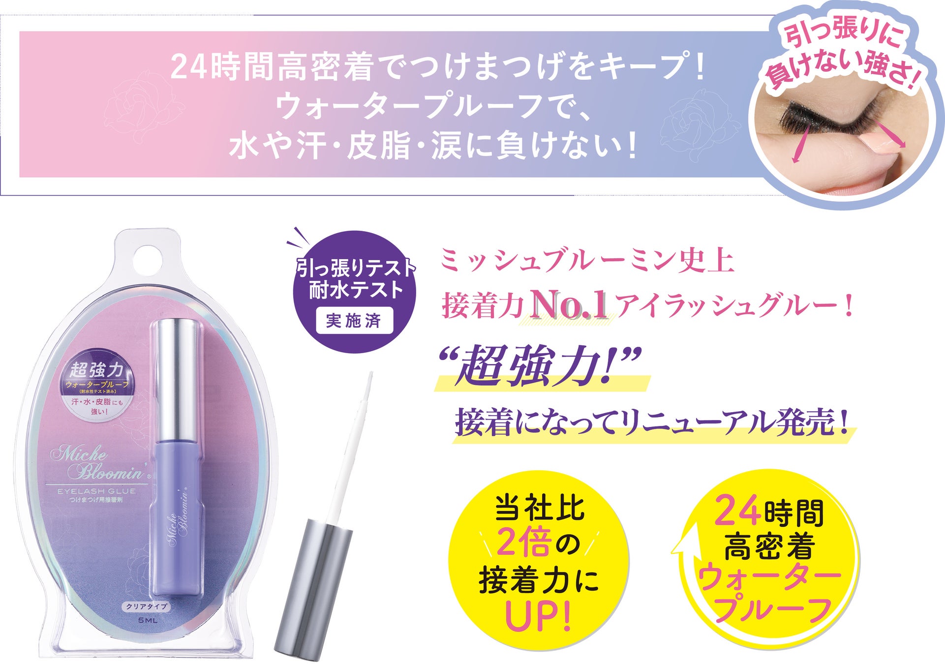 ミッシュブルーミン史上接着力No.1アイラッシュグルー!24時間高密着になってリニューアル発売!
