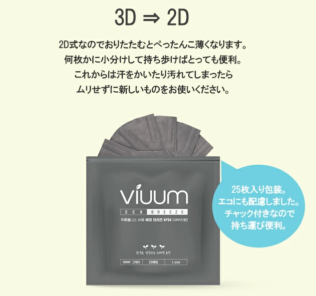 不快感0(ゼロ)の境地へ。韓国発!最新型KF94 2DマスクViuum(ビウム) 。高機能なうえにオシャレも楽しめるセブリ型。