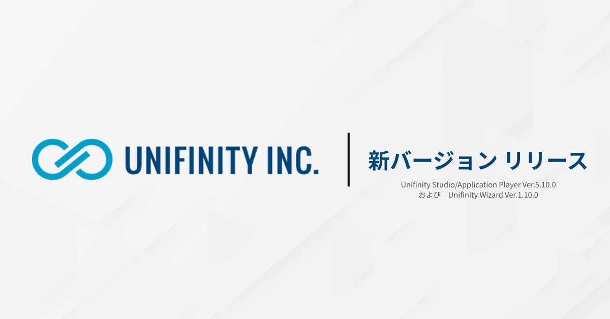 株式会社ユニフィニティー(東京都渋谷区、代表取締役曽良俊介、以下「当社」といいます)は、当社が提供するノーコードモバイルアプリプラットフォーム「Unifinity」の新バージョンとなるUnifinity Studio/Application Player Ver.5.10.0及びUnifinity Wizard Ver.1.10.0をリリースいたしましたので、以下の通りお知らせいたします。