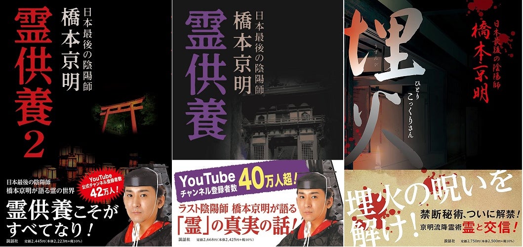 陰陽師・橋本京明の『霊供養』20刷出来!! 第二弾『霊供養2』3刷出来!! 京明流降霊術ガイドブック『埋火(うずみび)ひとりこっくりさん』も発売中! 『YouTubeチャンネル登録者数、約48万人!