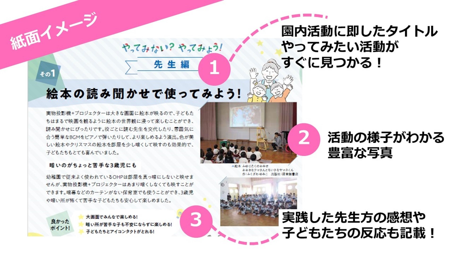 愛知教育大学との産学共同研究成果を発表【幼稚園・保育園・認定こども園版】実物投影機活用事例集『やってみない?やってみよう!』配布開始のお知らせ
