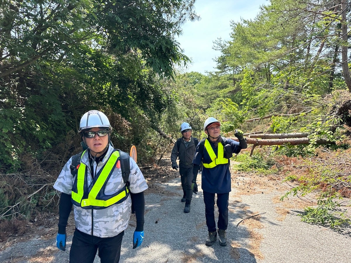 山崩れ現場を約3kmに渡り登山して荷受け現場に移動