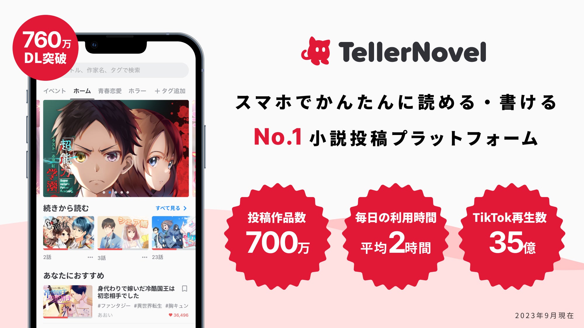 テラーノベルは、登録作家数が67万人以上、作品数は700万以上。電車の中でも寝る前のベッドの中でもサクサク快適に、もっと読みたい作品がどんどん見つかります。テラーノベルのアプリやWEBサイトから気軽に読めますので、ぜひドキドキワクワクする時間をお楽しみください!