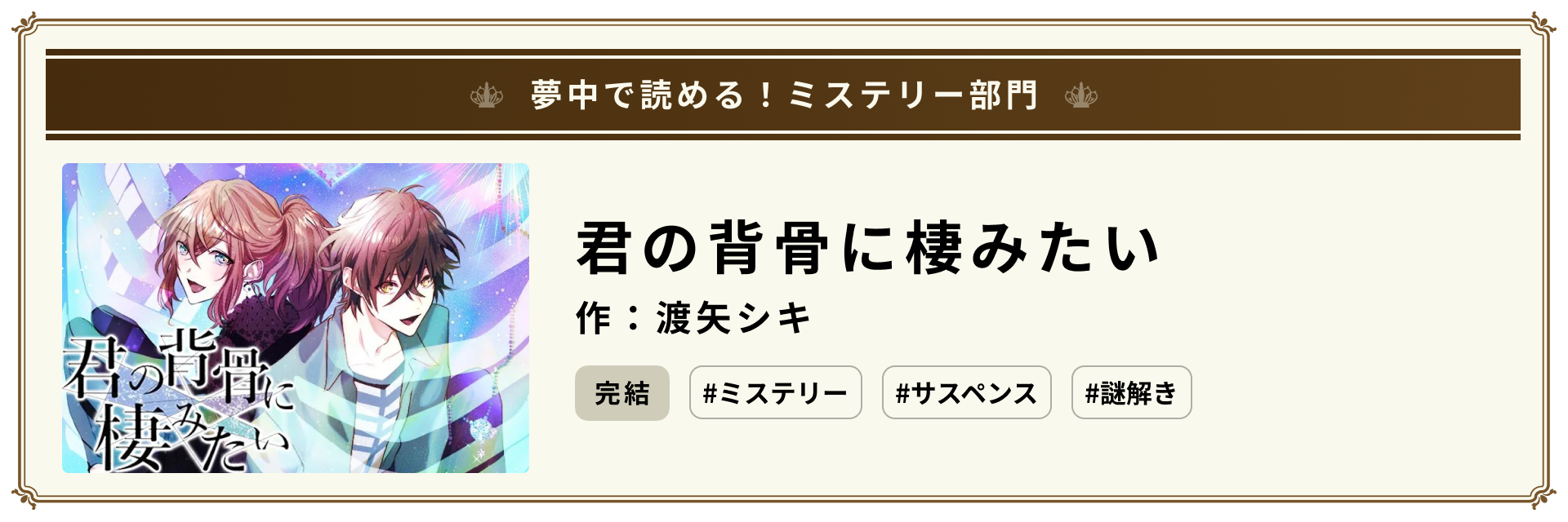 「君の背骨に棲みたい」作:渡矢シキ