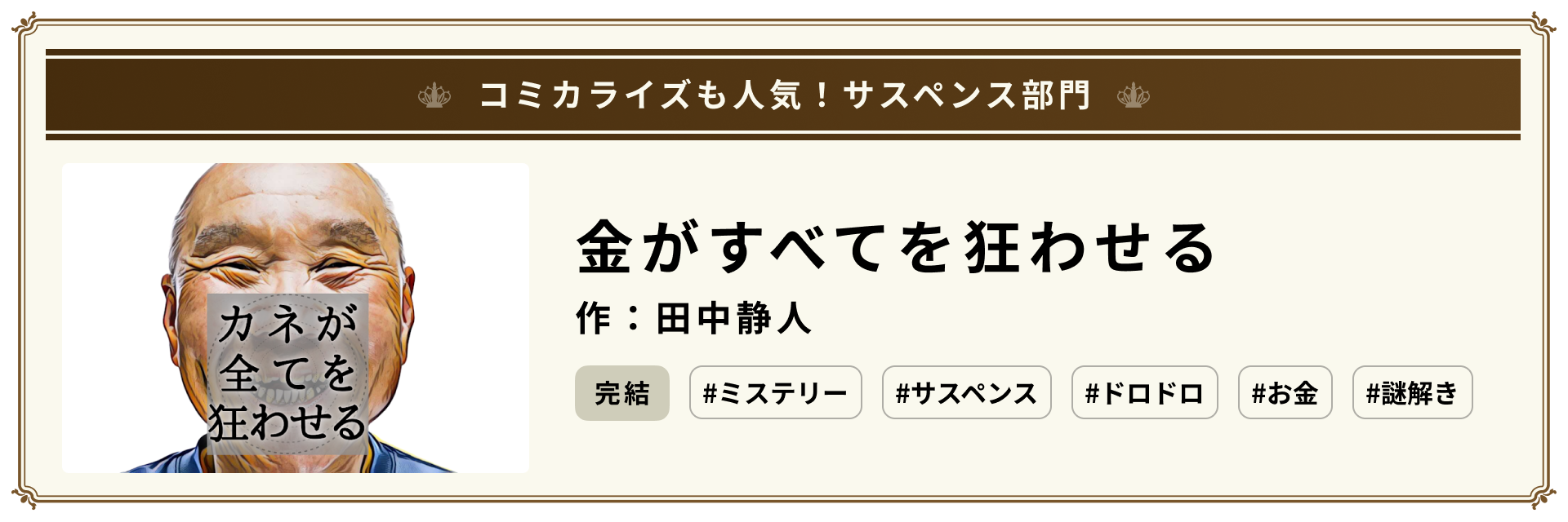 「金がすべてを狂わせる」作:田中静人