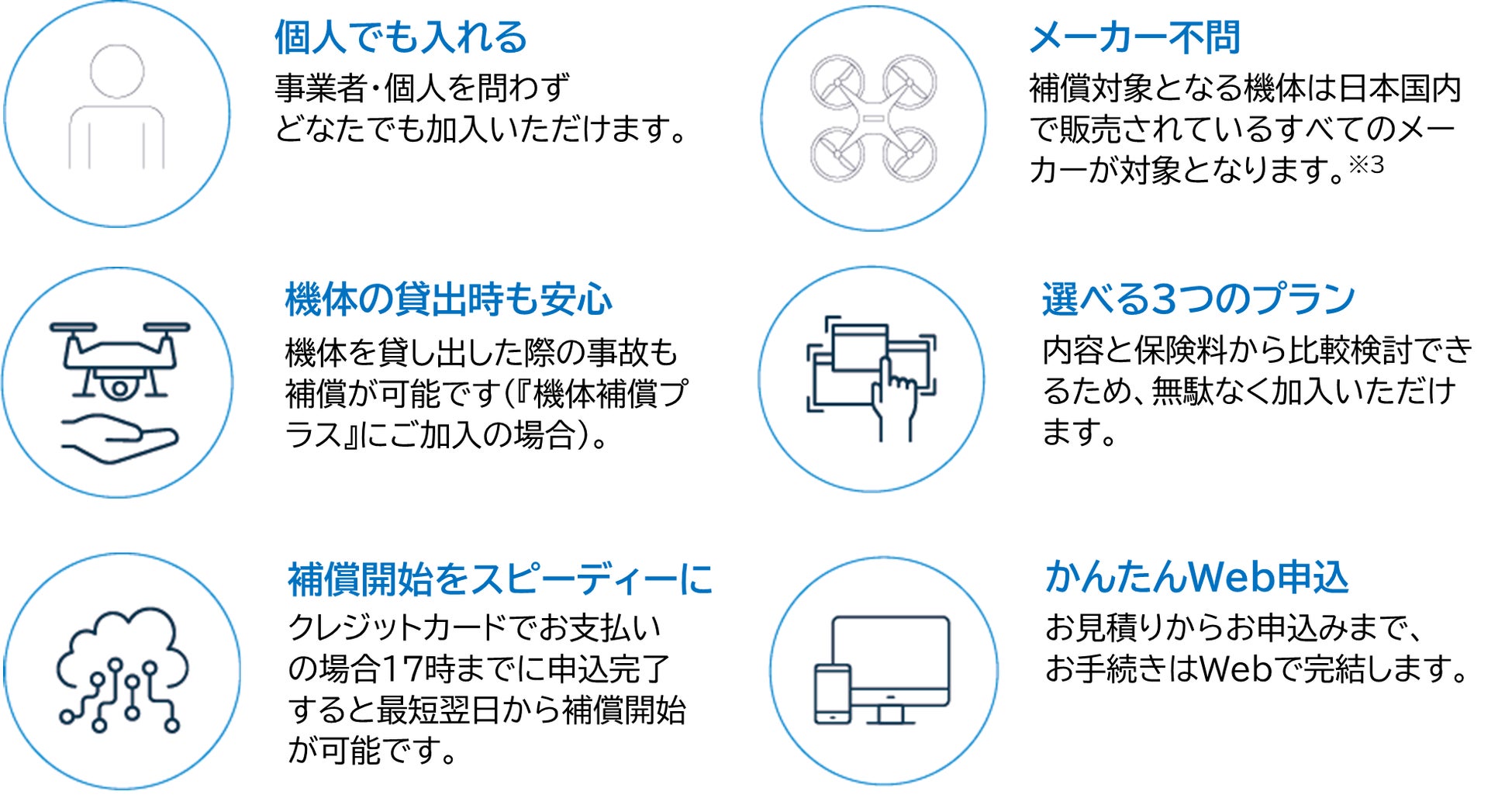 ドローンの市場は今後も大きく拡大することが見込まれており、これまで以上に様々な分野での利活用の進展が期待されていますが、活用機会が増加することに伴い、事故に対する懸念も増大しており、適切な補償確保へのニーズが高まっています。