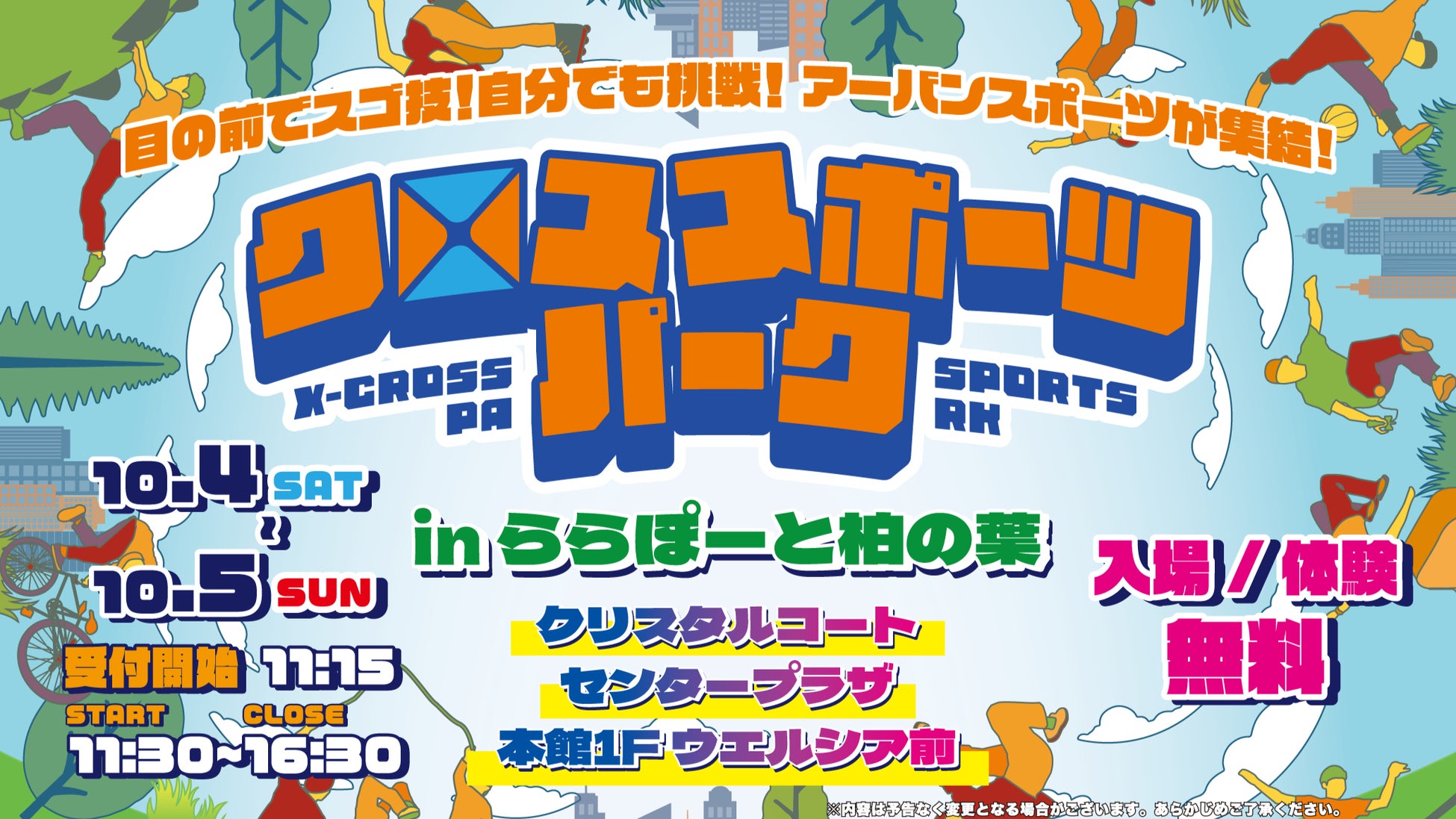 株式会社MoveX(本社:東京都品川区)は、親子で楽しめる体験型アーバンスポーツイベント「クロススポーツパーク in ららぽーと柏の葉」を、2025年10月4日(土)・5日(日)の2日間、ららぽーと柏の葉(千葉県柏市)にて開催します。
