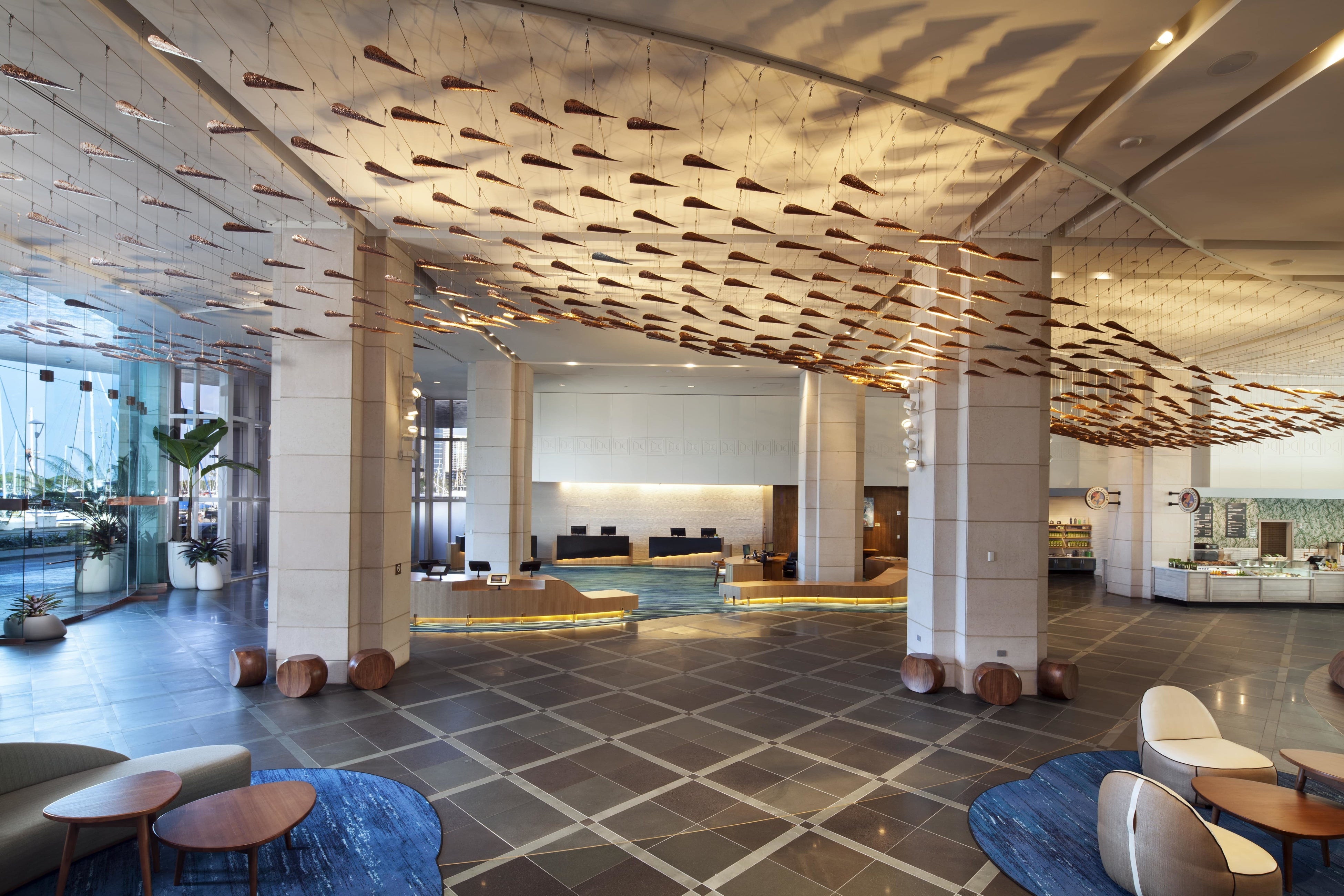 ハワイのアーティスト、カイリ・チュン氏による印象的なアート作品が展示されており、くつろいだ時間を楽しむ現代的で洗練された雰囲気。
