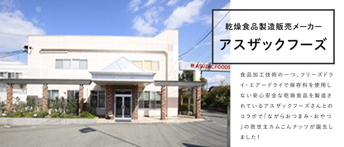 ナッツよりカロリーが低く、ナッツがより美味しくなる、腹持ちの良い低カロリー食品探しで出会った乾燥コンニャクとミックスすることでミックスナッツの満足感はそのままに…カロリーと脂質OFFを実現した「こんにゃくたっぷりカムこんナッツ」が出来上がりました。