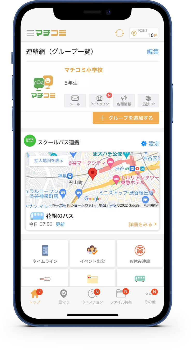 ④保護者の導入設定は不要。マチコミアプリトップにバスの位置が自動表示