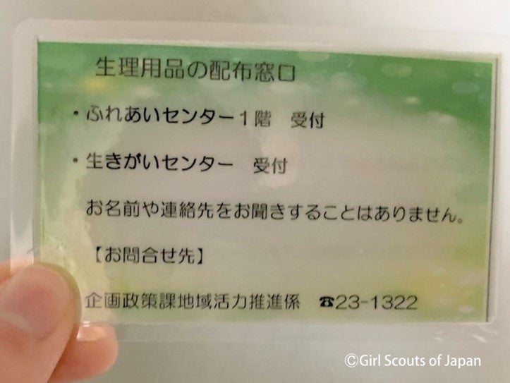 「生理の貧困」に関して校内生徒への理解を促進する活動をおこない、地元自治体「男女共同参画基本計画支援」に募金活動で貢献。公共施設への生理用品設置を促進した。