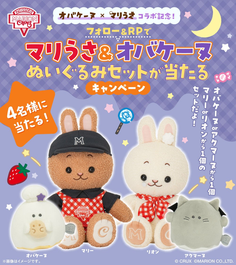 9月18日(水)12時から9月30日(月)の期間中、マリうさ公式Xアカウントにてぬいぐるみセットが当たるフォロー&リポストキャンペーンを実施いたします。