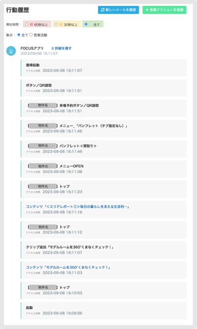 『物件アプリ』の顧客活動状況に基づいた『KASIKA』からの営業アクション