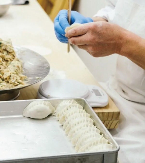 餡の旨味を一滴残らず包み込めるよう、「形」「ひだの厚さ」にもこだわり続け、改良を続けた結果、餡がギュッと詰まった「ぽっちゃり型」に辿り着きました。衛星管理が行き届いた自社工場で職人が1つ1つ丁寧に手包みし、ほのかな甘みと上品な旨みをでギュッと閉じ込めます。