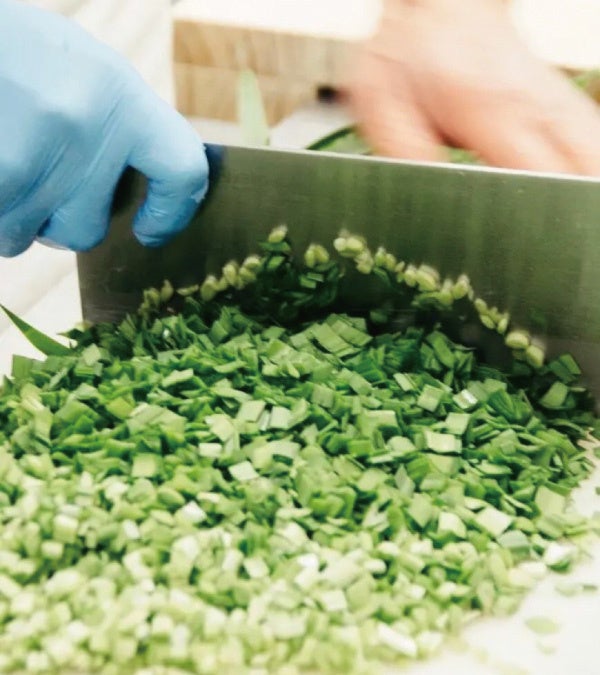 餃子の旨みの決め手となる餡は、厳選した国産素材(新鮮な白菜、キャベツ、ニラと、挽きたての豚肉)を使用。最適な野菜と肉のバランスを試行錯誤し、素材の旨味を最大限に引き出しています。肉、野菜、調味料の調合の順序もこだわりがありシンプルな素材と味付けで、野菜の甘みを強く感じられるジューシーな餡です。