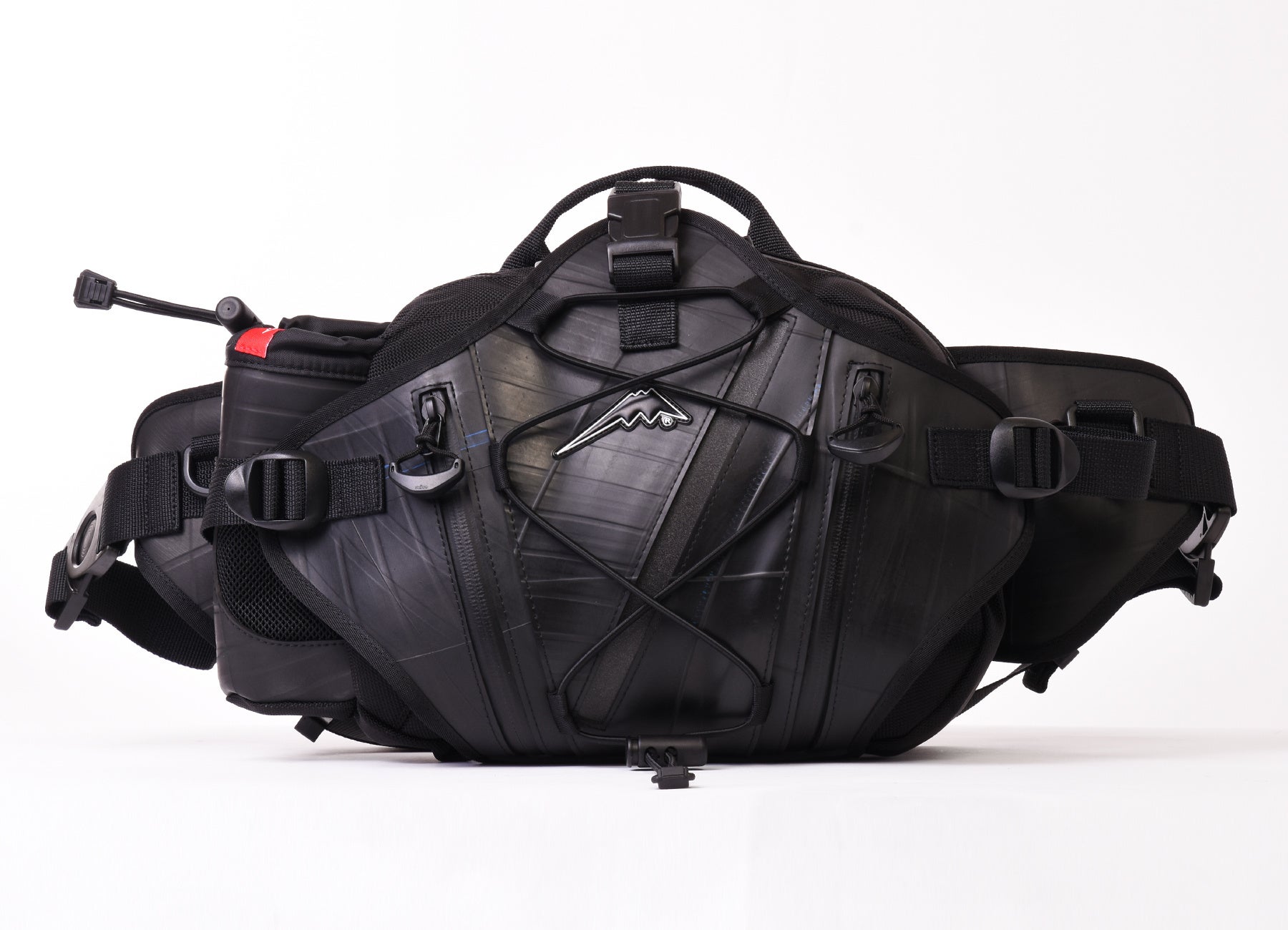 KUSHITANIが培った高い安全性と操作性をベースに、バッグ表面全体にはSEALの特徴である廃棄されたタイヤチューブを採用。加工が難しい廃材を全て国内職人による一つ一つ手作業での縫製を行う事により、廃タイヤの特徴でもある一つ一つ表情の異なる素材感を持つ世界に一つだけの「ヒップバッグ」が完成しました。グローブをした状態でも使いやすい特殊パーツや夜間の走行時にも安全性を確保する反射材を採用し、さらには各パーツに採用された高い強度と防水性を持つCORDURA(R)ナイロンや止水ファスナーにより、走行中の突然の雨からも内部を守るなど、高い機能性を兼ね備えたアイテムです。