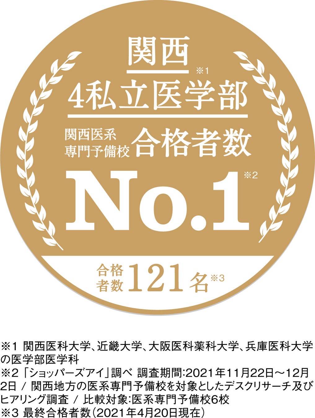 関西の医系専門予備校合格実績No.1(関西4私大医学部医学科合格者数)