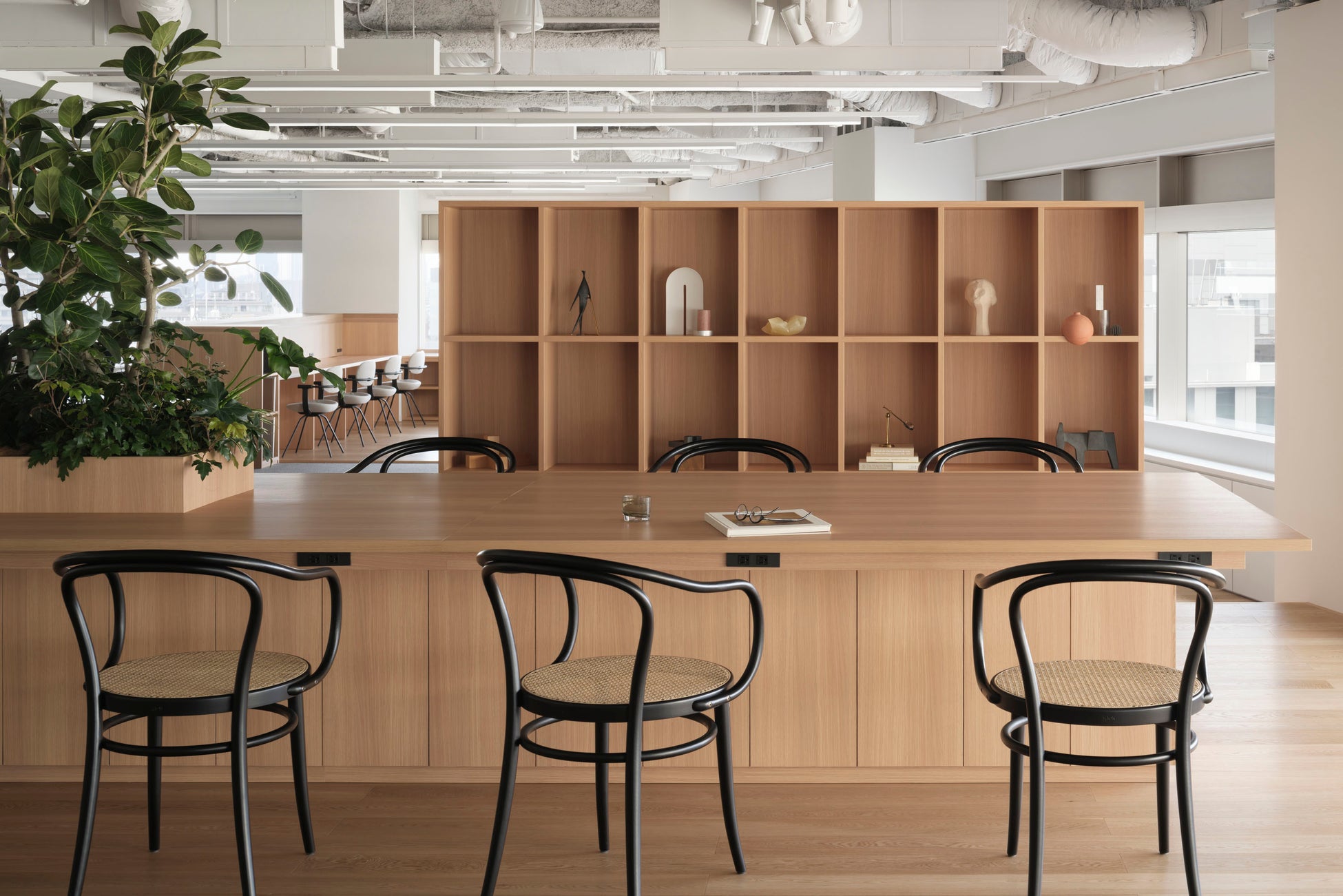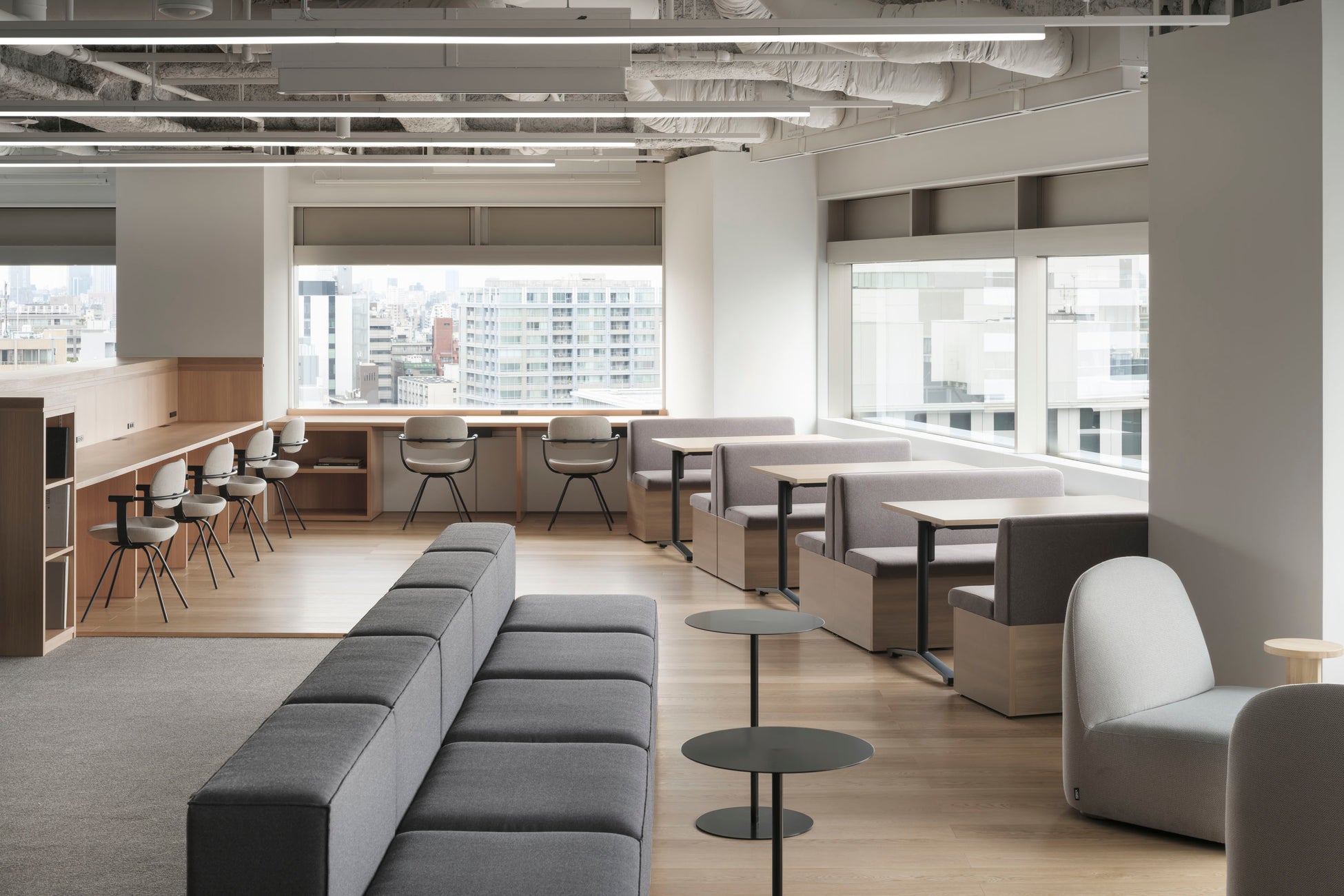 14Fフロア:開放的な眺望を生かし、天井と壁をできるだけなくした自然光が入る空間
